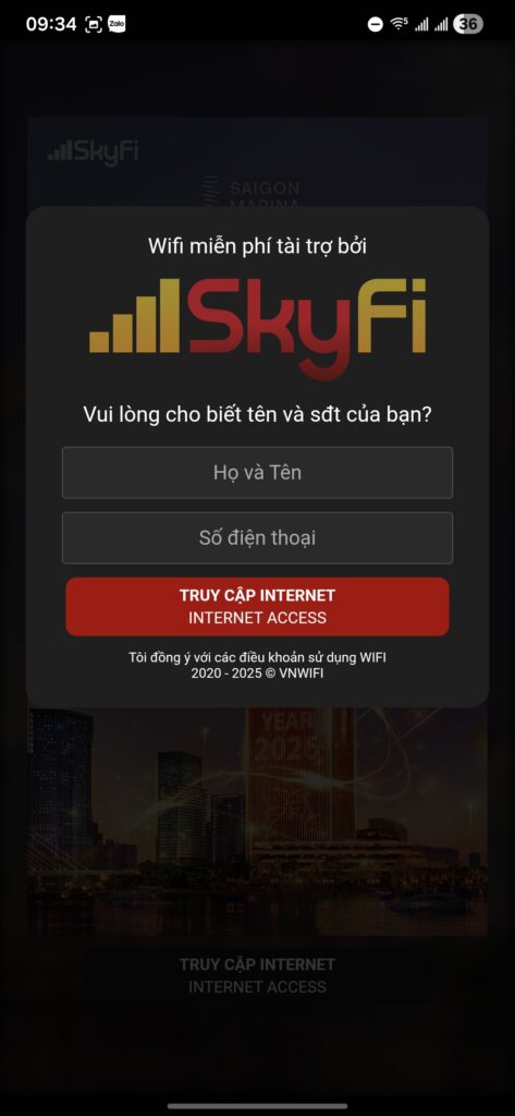 Hệ thống WiFi tại sự kiện được tích hợp WiFi Marketing với trang chào đăng nhập: